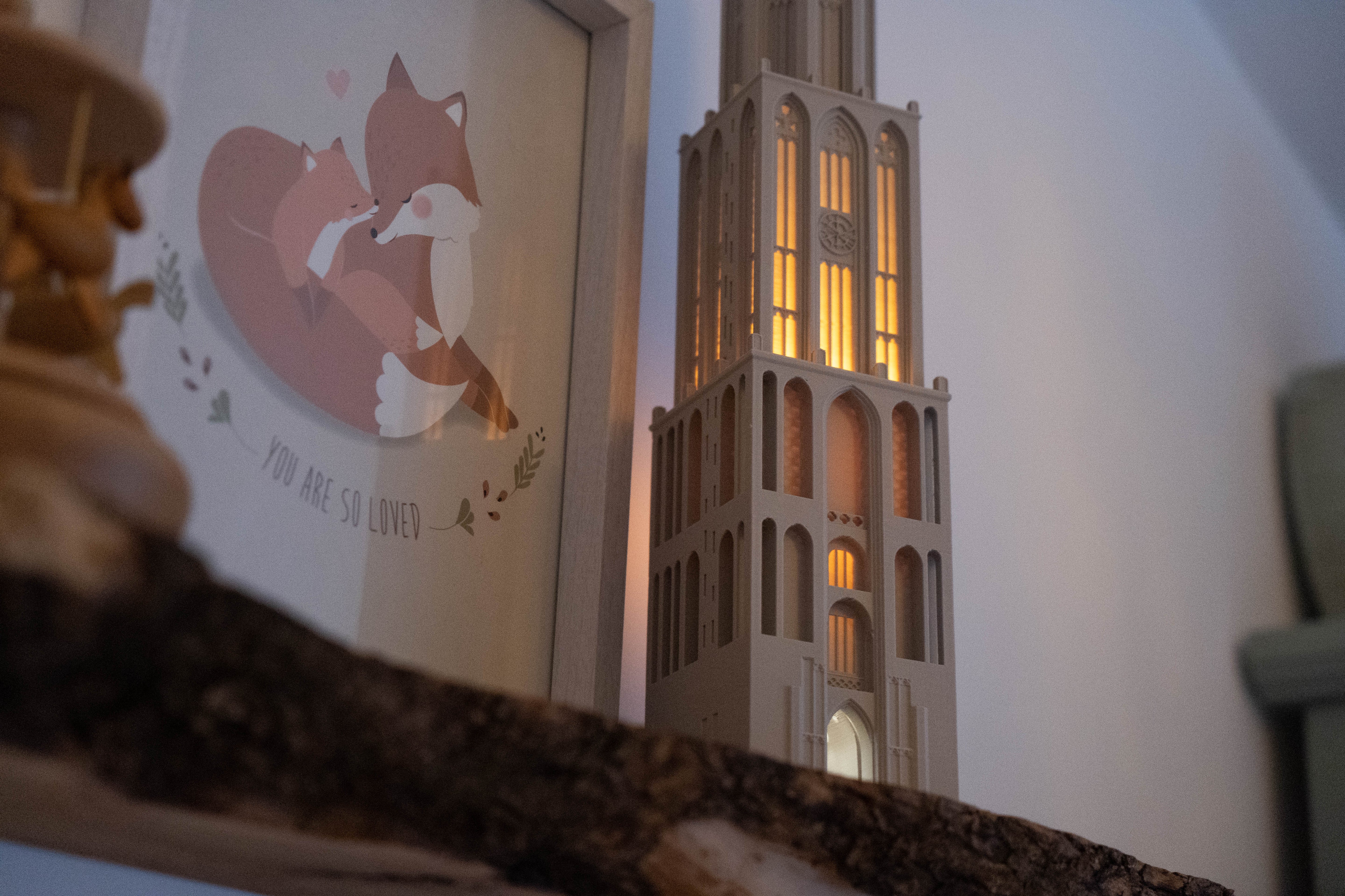 Of het nu op een boekenplank, kantoor of kinderkamer staat, deze 3D-geprinte Domtoren zal het middelpunt van de aandacht zijn. Een vleugje Nederlandse trots.
