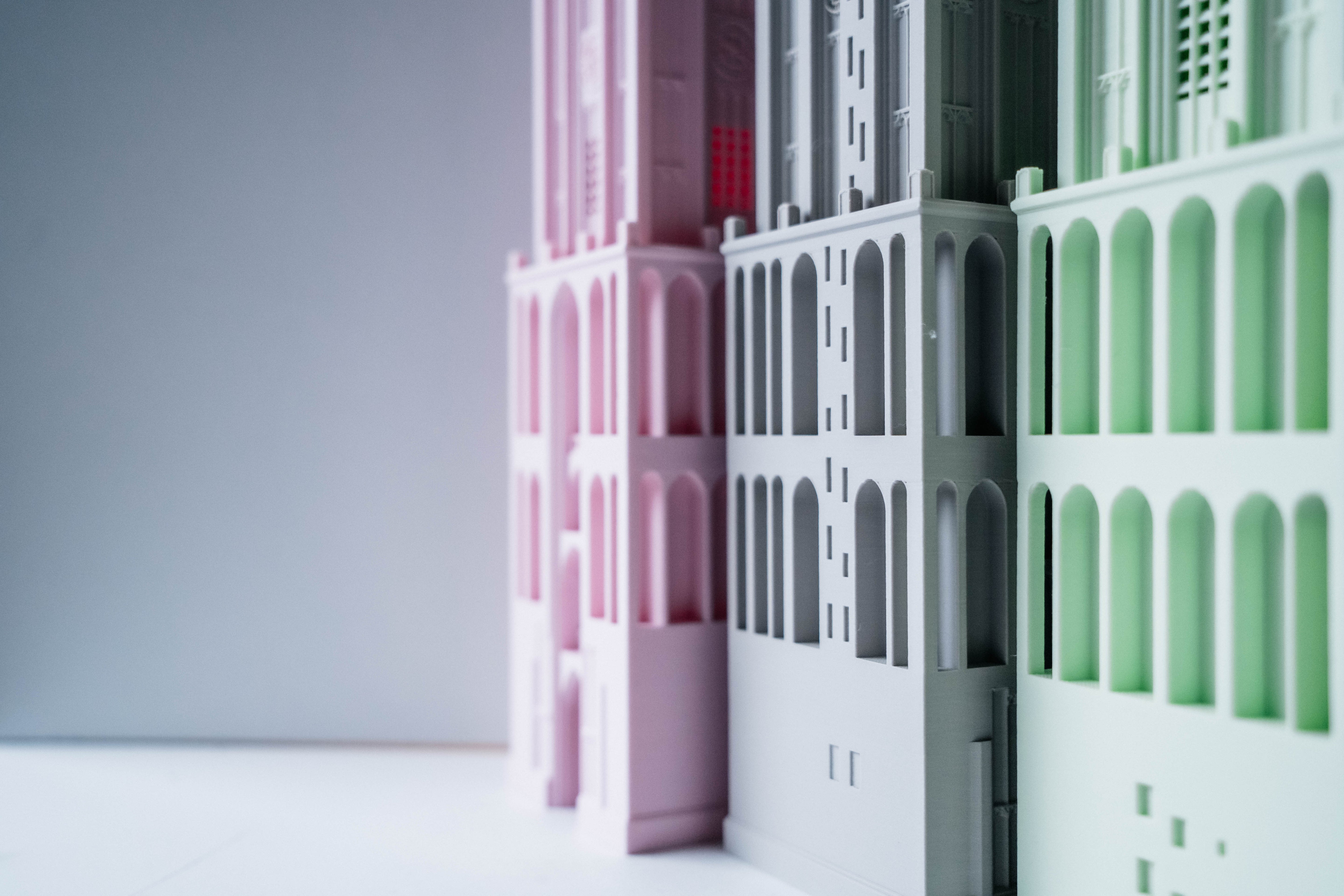 Unieke 3D-geprinte lamp in steenlook – Diffuus licht aan drie zijden